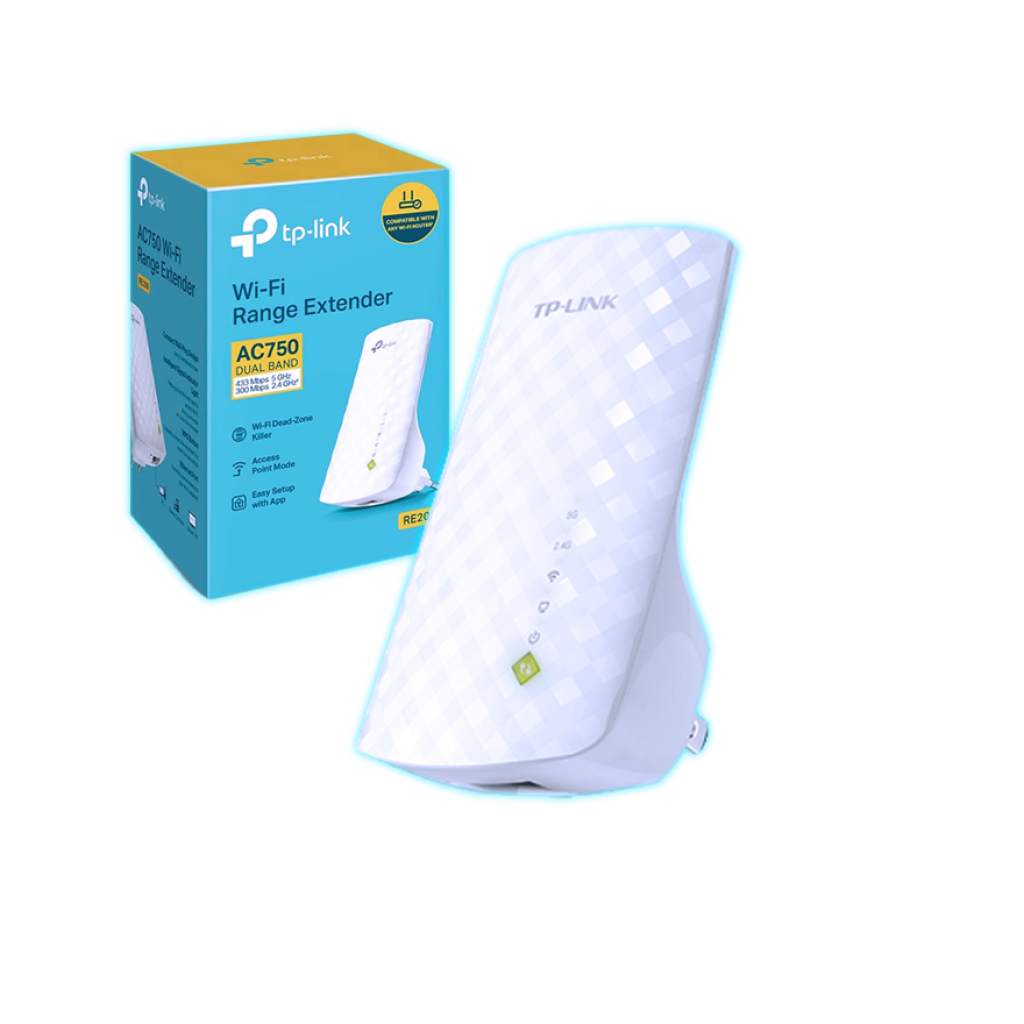 El TP-Link RE200 es un extensor de señal WiFi que permite mejorar la cobertura inalámbrica en espacios donde la señal del router principal no llega correctamente.